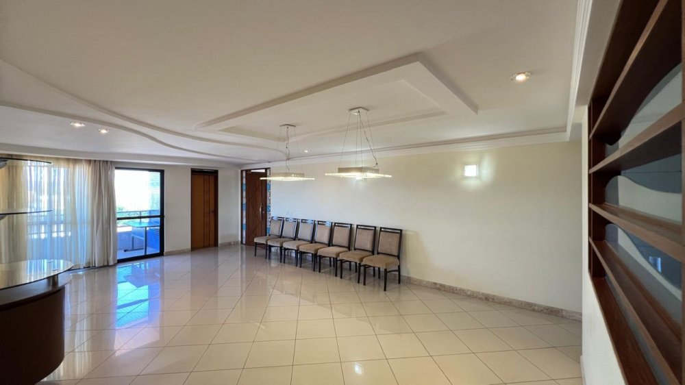 Ao entrar, somos recebidos por uma sala ampla e imponente, dividida em três ambientes integrados, com lavabo, móveis planejados de alto padrão e dois acessos independentes: um para a área íntima e outro para a cozinha. A sala se conecta a uma varanda generosa com vista deslumbrante voltada para o sul, e ainda conta com uma sacada adicional voltada para a nascente, valorizando a ventilação e a iluminação natural.