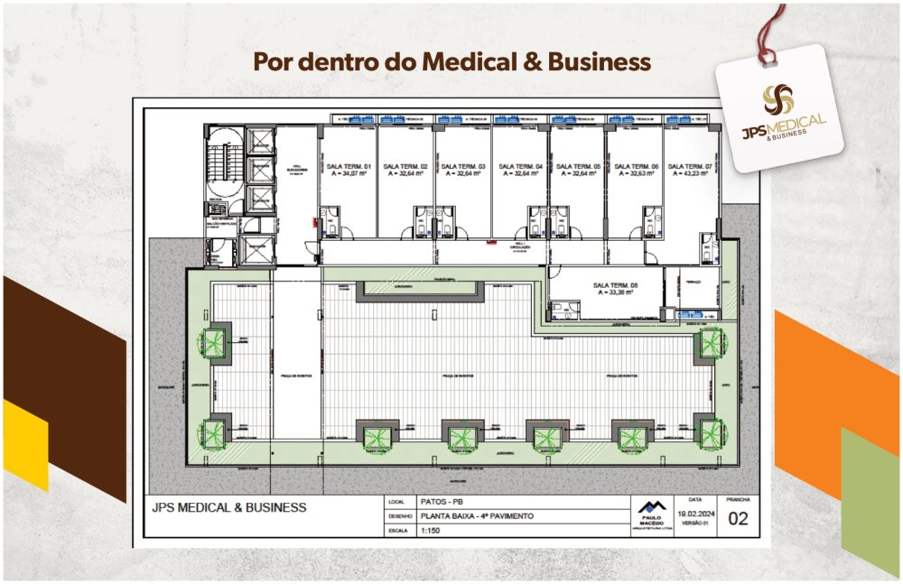 A arquitetura do JPS MEDICAL & BUSINESS se destaca facilmente. Planejado de forma moderna e sustentável, esse será um dos prédios mais importantes do sertão paraibano.