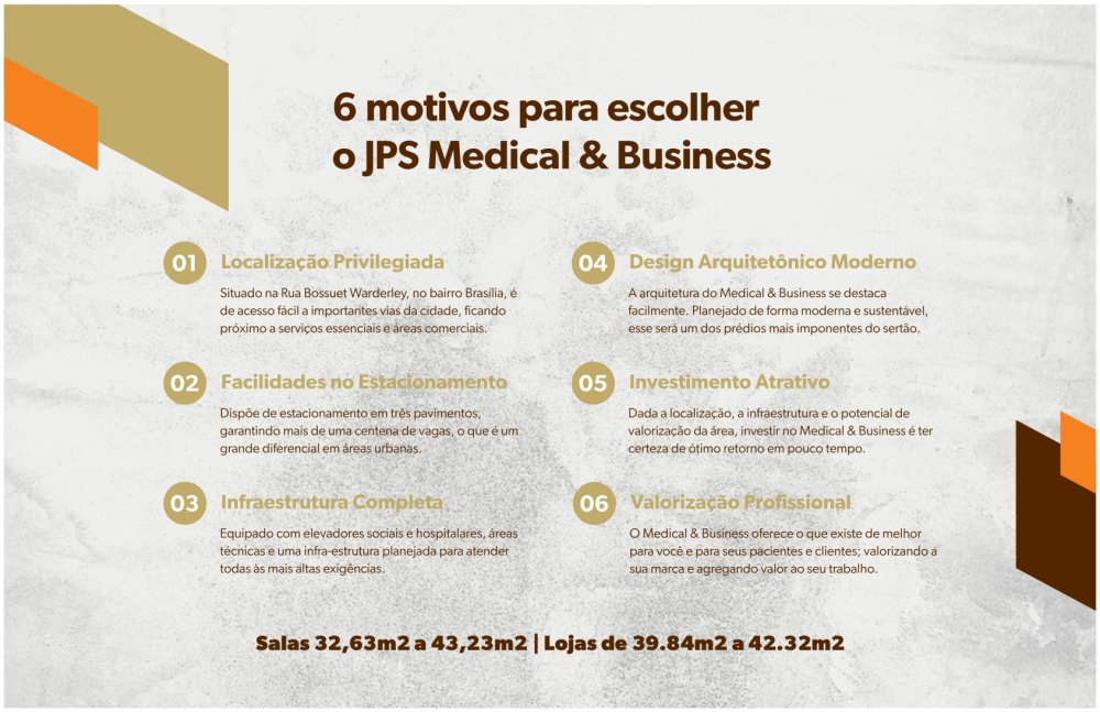 Dada a localização, a infraestrutura e o potencial de desenvolvimento da área, investir no JPS MEDICAL & BUSINESS é ter certeza de ótimo retorno em pouco tempo.